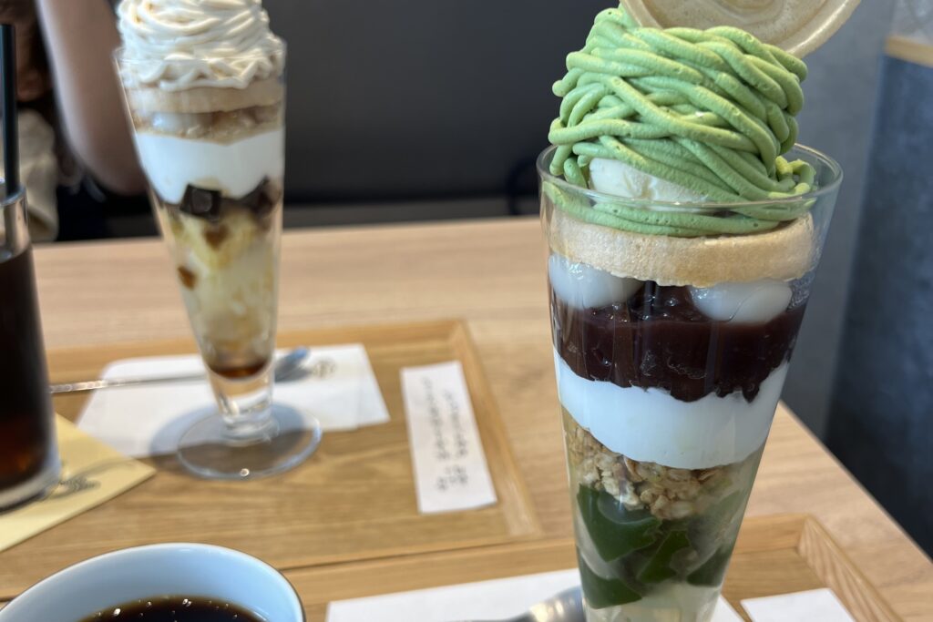 抹茶が上品な味わいで(ぬたくんはほうじ茶パフェ)すんごい感動した。
